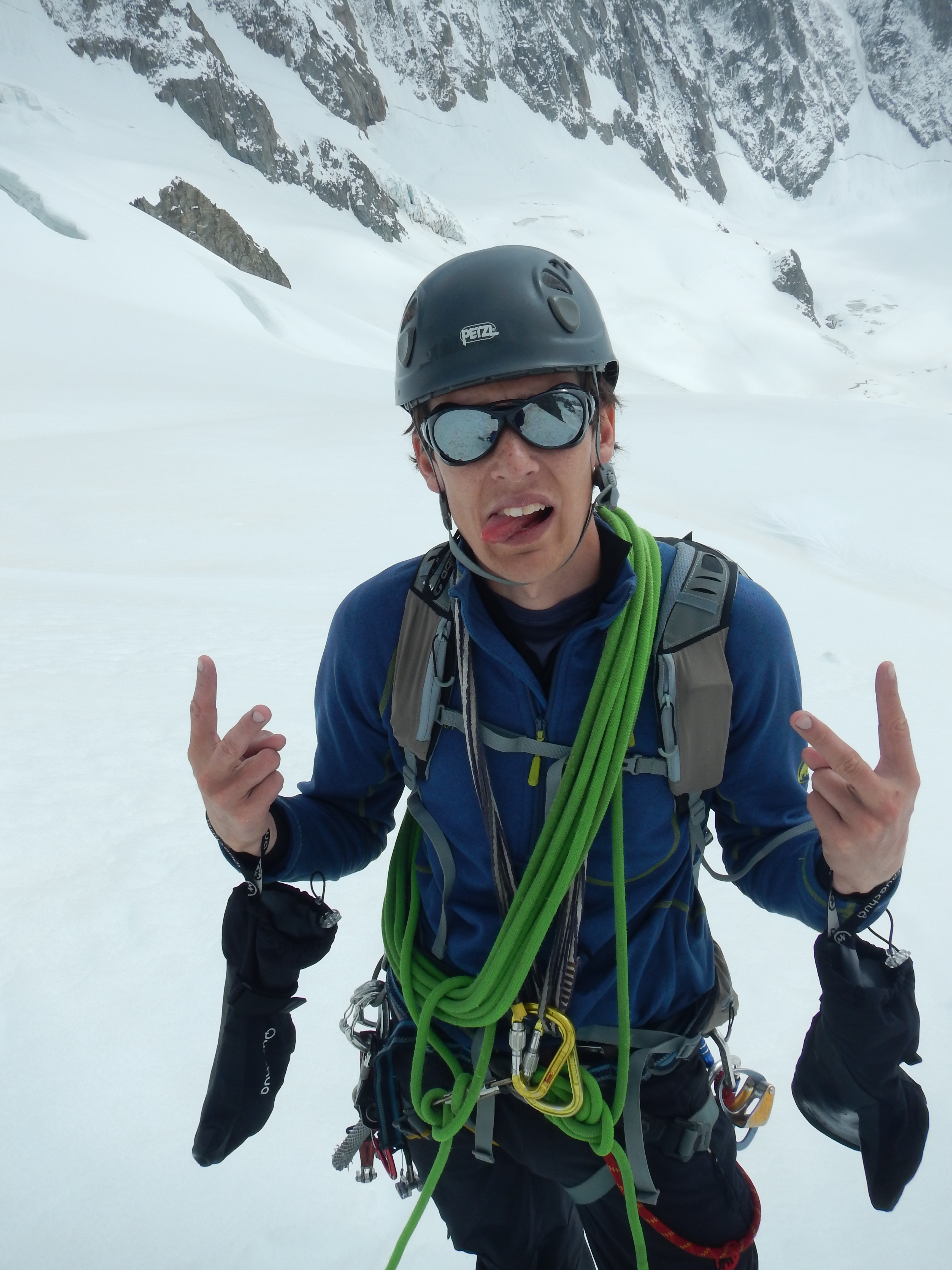 La neige ne manque pas (du tout…!) et nous faisons la trace de A à Z! Grâce à un « bon regel », la montée au sommet nous prend environ 2h de plus que prévu…!