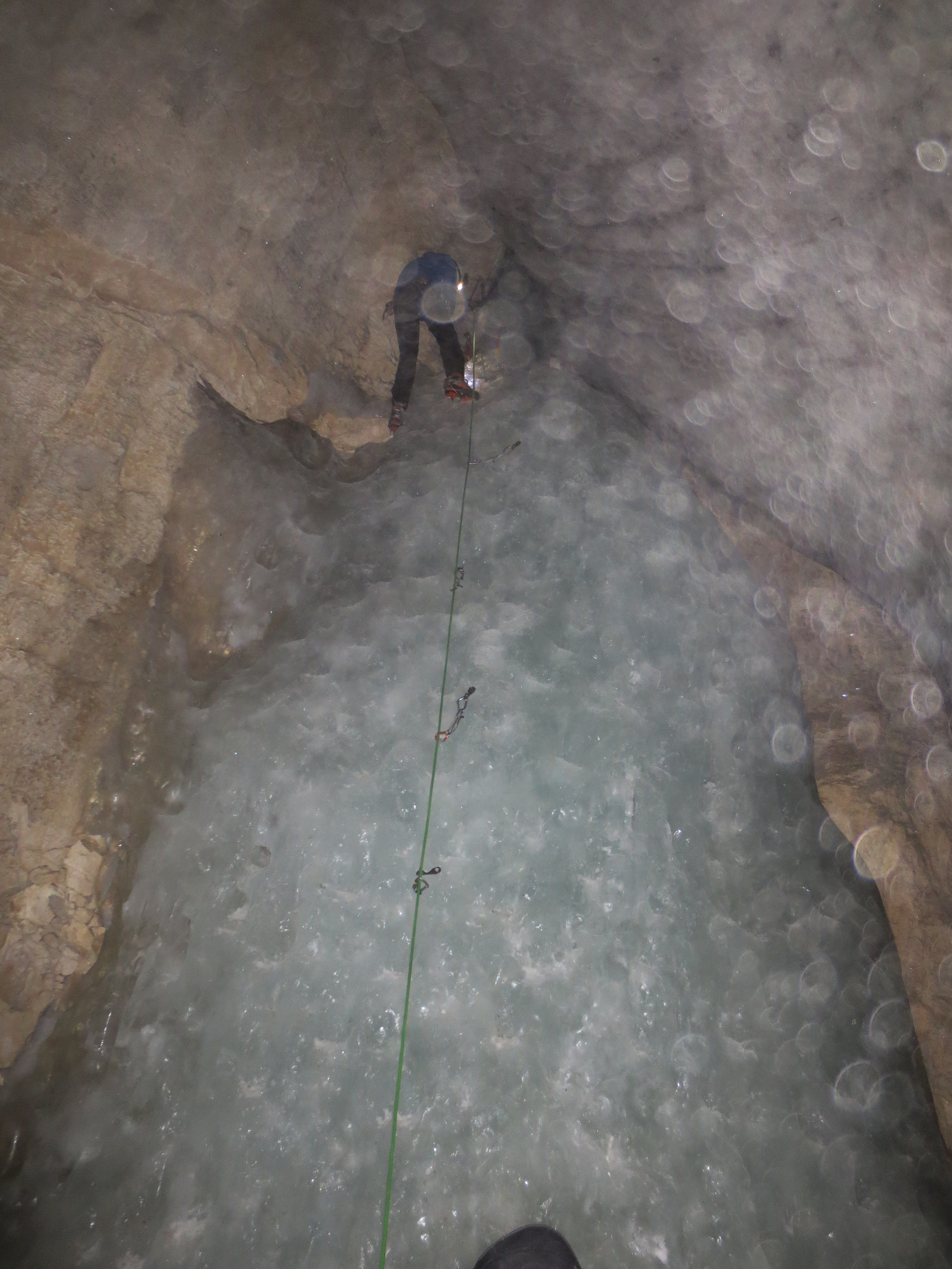 Une journée sous terre à la Grande Glacière du Parmelan pour parfaire les techniques d’escalade sur glace! (idéale pour une journée de pluie…!).